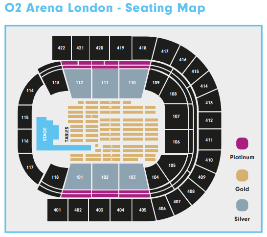- Reserved places within VIP lounge at the 5 star ‘InterContinental London – The O2’ hotel