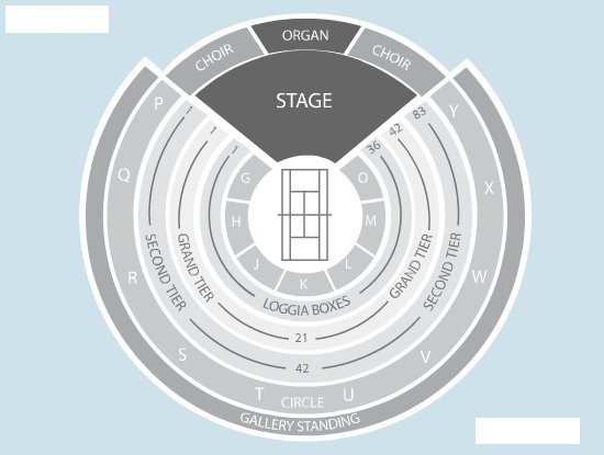 Loggia (Ground Level), Grand Tier (Level 1) and Second Tier options.