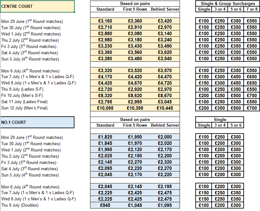 Wimbledon Tennis debenture seats are a dynamic market so stock and prices can change subject to availability.